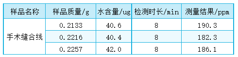 AKF-CH6通過對手術(shù)縫合線樣品的多次測量,結(jié)果顯示樣品含水量約為 186.2ppm。測量時長僅為 8 分鐘,檢測快速方便。同時,結(jié)果的重復(fù)性較好,充分體現(xiàn)了 AKF-CH6 卡爾費(fèi)休水分測定儀的穩(wěn)定性能。