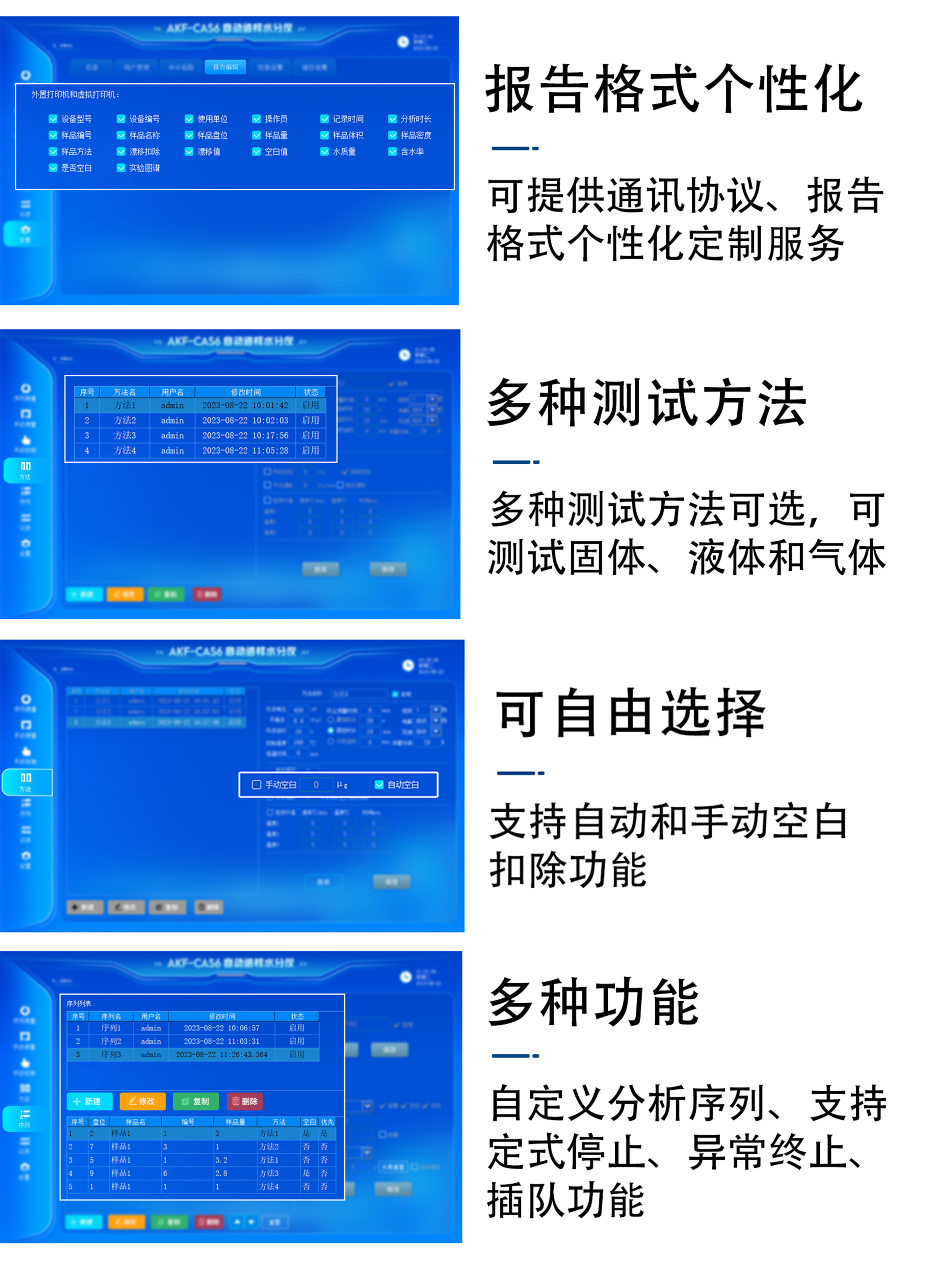 7、使用便捷、可選擇內(nèi)部氣源或外部氣源,分析序列可進(jìn)行編輯、存儲并調(diào)用,可定義樣品分析優(yōu)先級,自動空白測定和空白扣除
